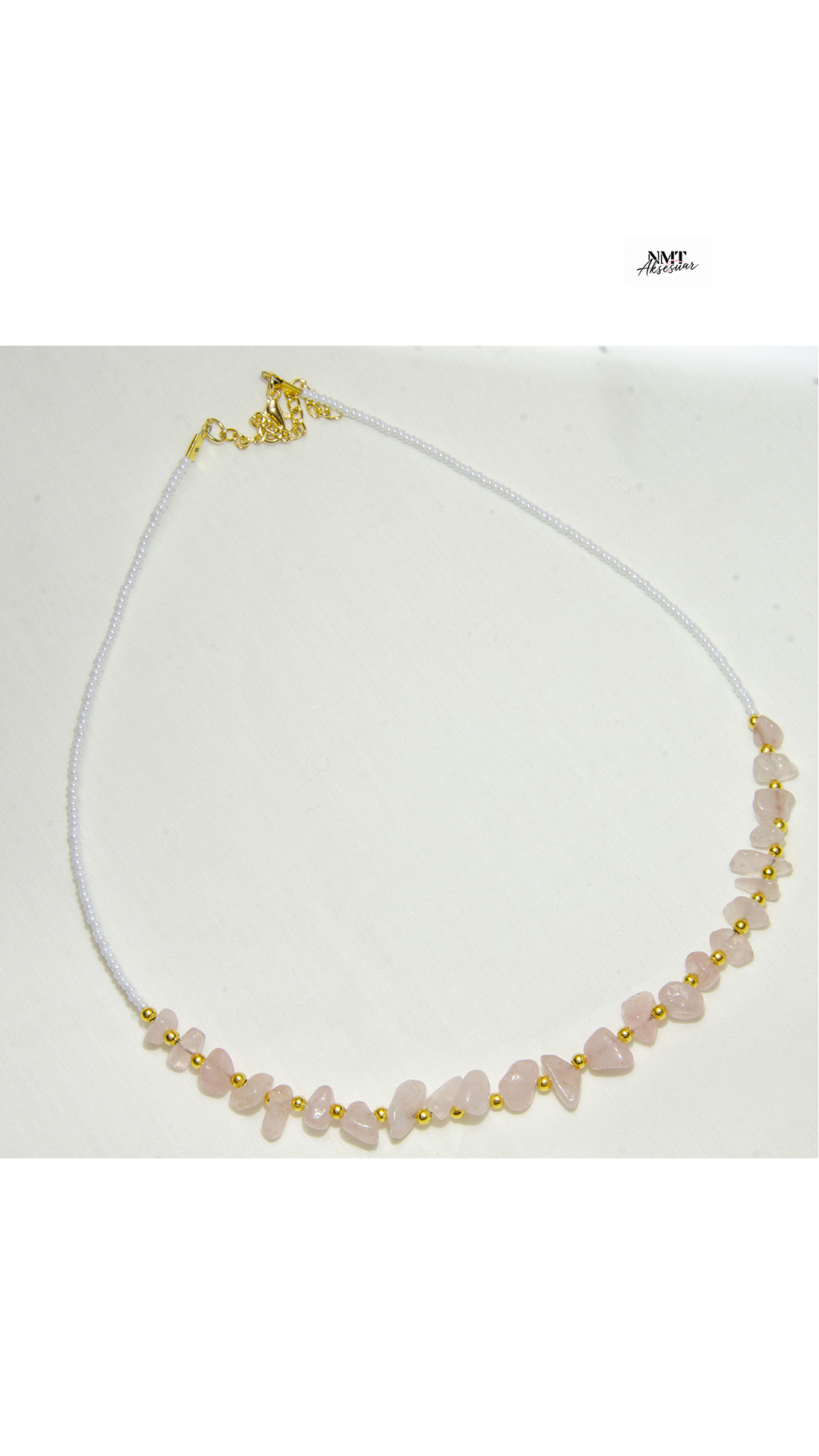 Pembe Kuvars (Quartz) Doğal Taş Kolye